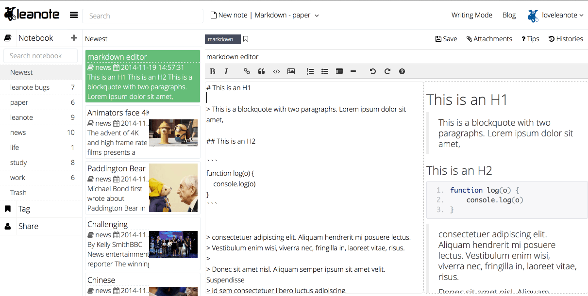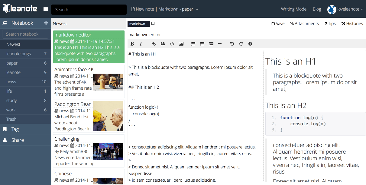 Knowledge, Blog, Sharing, Cooperation... all in Leanote